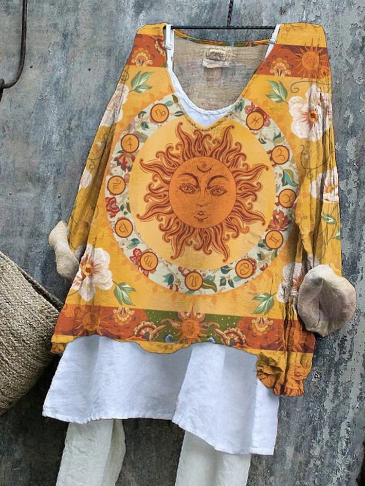Litha Sun Floral Art Print Cozy Flowy Tunic