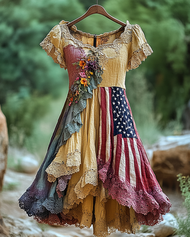 Summer Vintage Independence Day Lace Patchwork Dress 0963