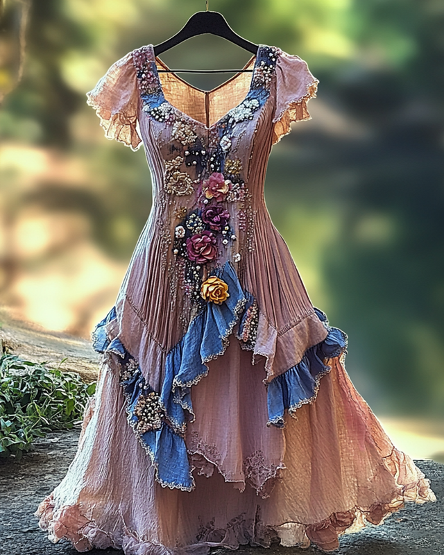 Summer Irregular Lace Patchwork BeadedRuffle Dress 0eb4