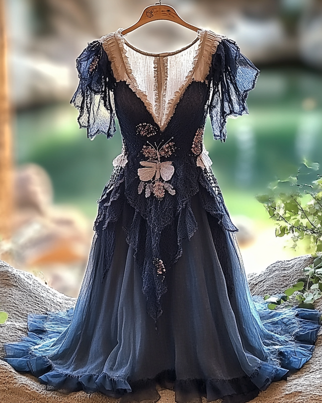 Summer Irregular Lace Patchwork BeadedRuffle Dress 9c3f