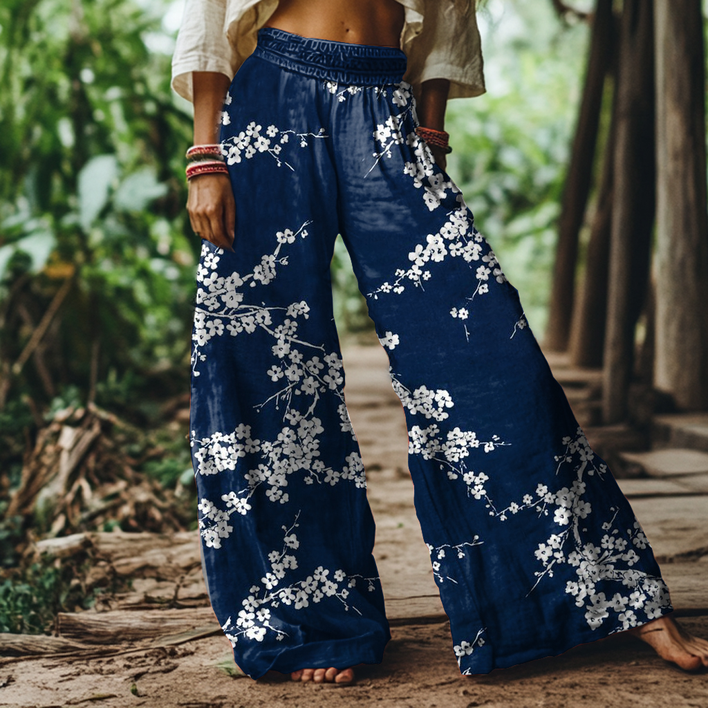 Vintage Floral Art Print Loose Pants